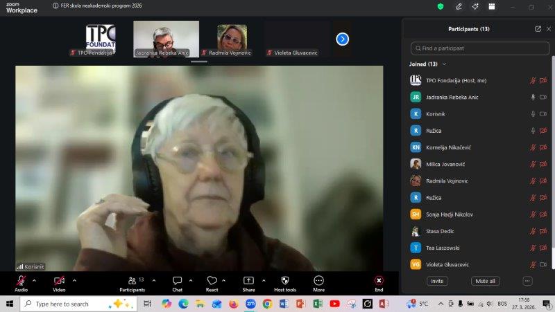 27.03.2026 godine započeo je kurs pod nazivom “Da prostiš, moja žena”u ovkiru FER škole sa predavanjem prof.dr. Inge Tomić-Koludrović. Izjaja poput “Da prostiš, moja žena” djeluje bezazleno, kao šala ili obična fraza koju ljudi izgovaraju iz navike, bez posebnog značenja. Međutim, savremena sociologija roda upozorava da ovakve “sitnice” nikada nisu samo riječi. Iza njih se često kriju duboke društvene strukture koje oblikuju način na koji razumijemo rodne odnose.