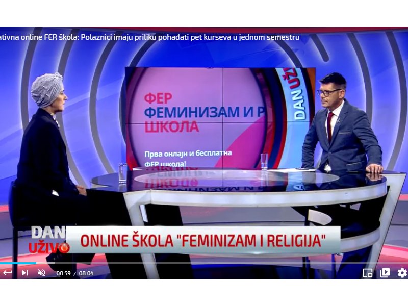 Centar za interdisciplinarne studije Univerziteta u Sarajevu “prof. dr. Zdravko Grebo” u saradnji sa Univerzitetskim gender resursnim centrom i TPO Fondacijom najavljuje otvaranje prijava za prvu online FER školu pod nazivom “Feminizam i religija”, koja će se održati tokom zimskog semestra 2024/2025. godine. Opširnije o prvoj online FER školi u “Danu uživo” govorila je dr. Zilka Spahić Šiljak.