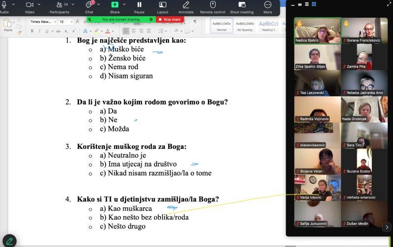 Jedno od ključnih pitanja koje je obilježilo predavanje bilo je: šta bi se promijenilo kada bi se Bog oslovljavao u ženskom rodu? Da li bi takva promjena uticala na religijsko iskustvo, percepciju Boga, ali i na društvene odnose i rodne uloge?